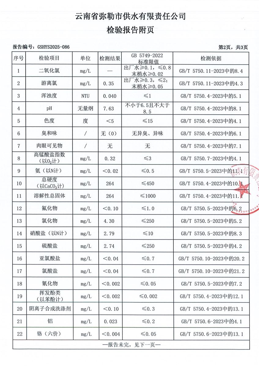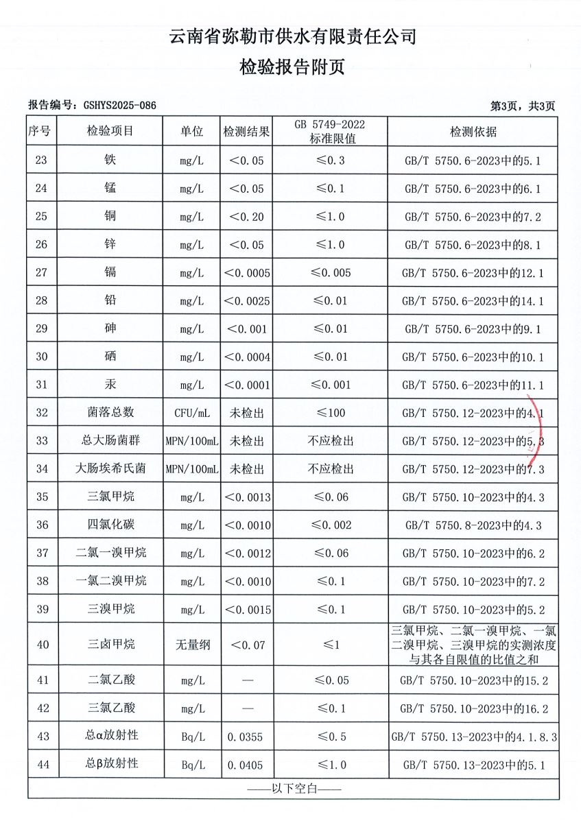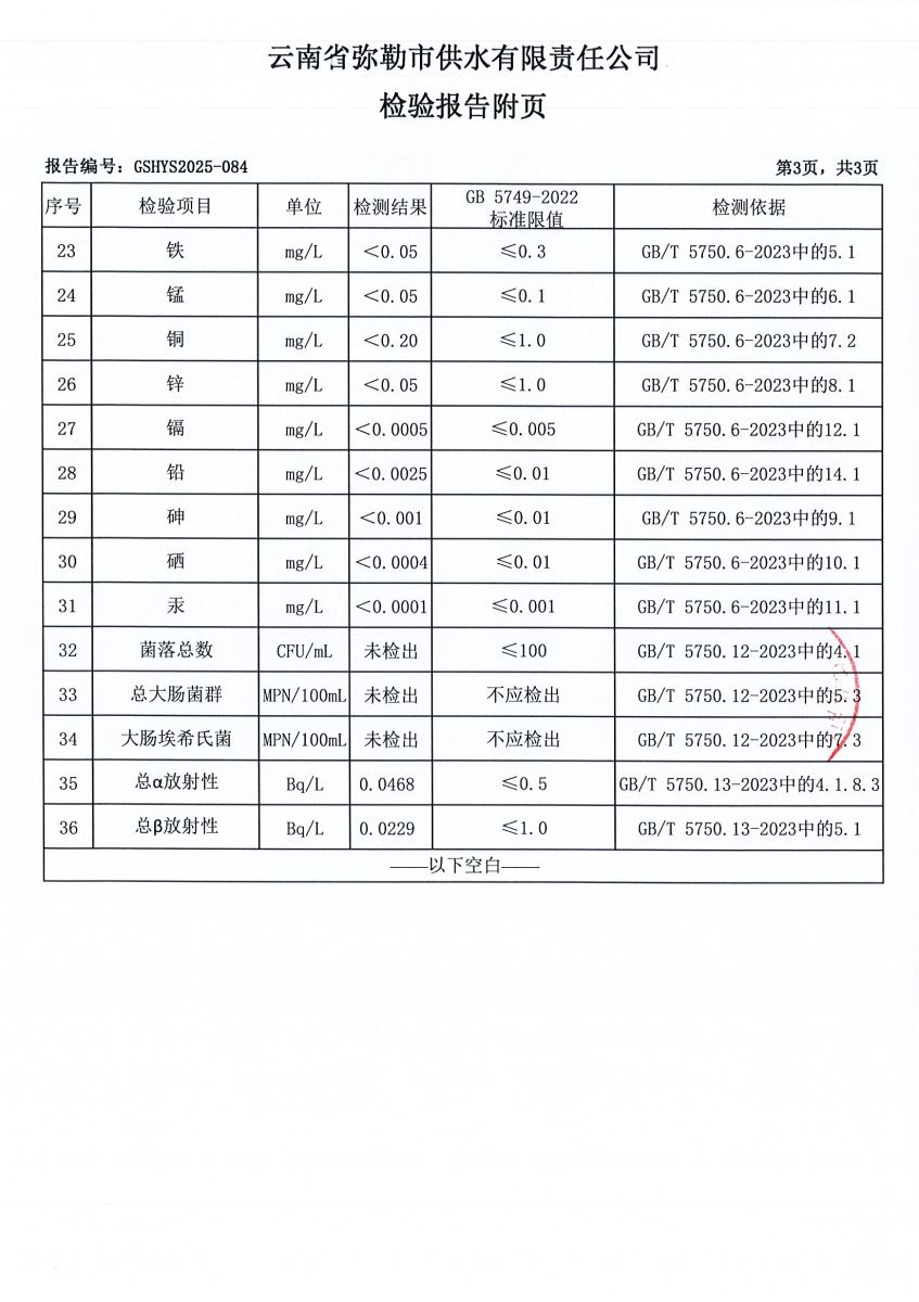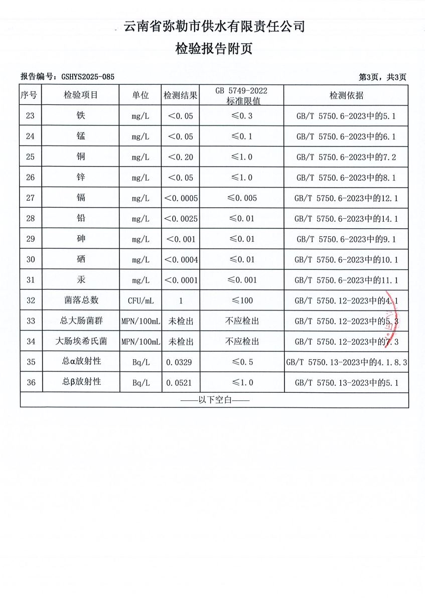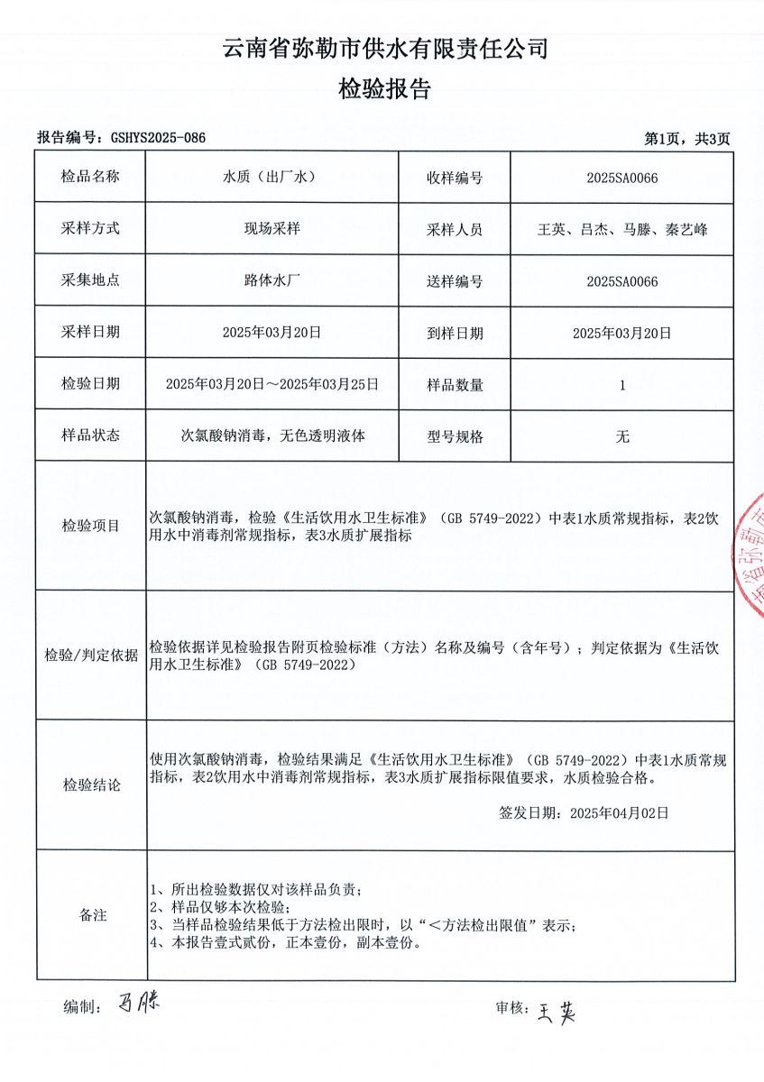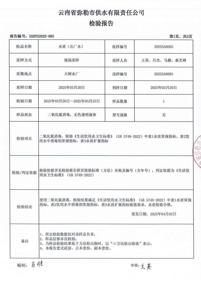 2025年3月水质月检报告