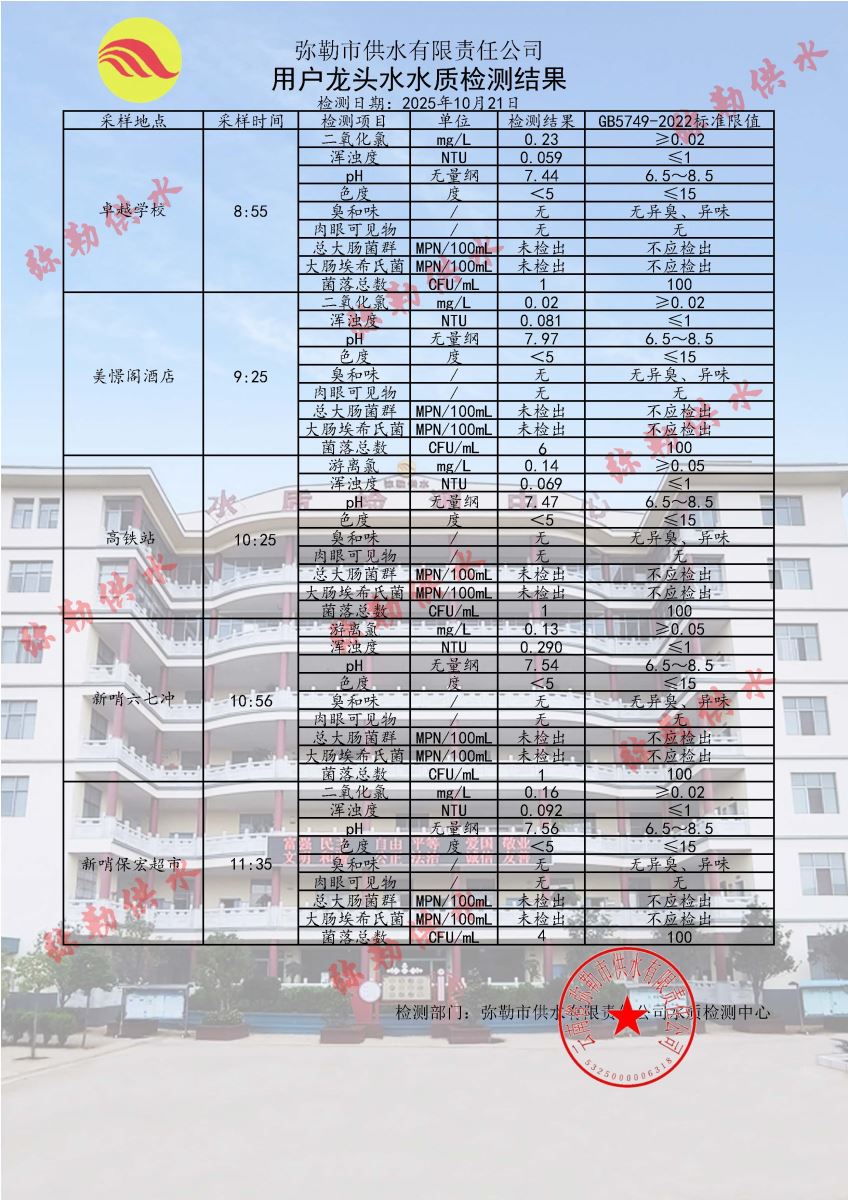 2025年10月21日水质检测日报表