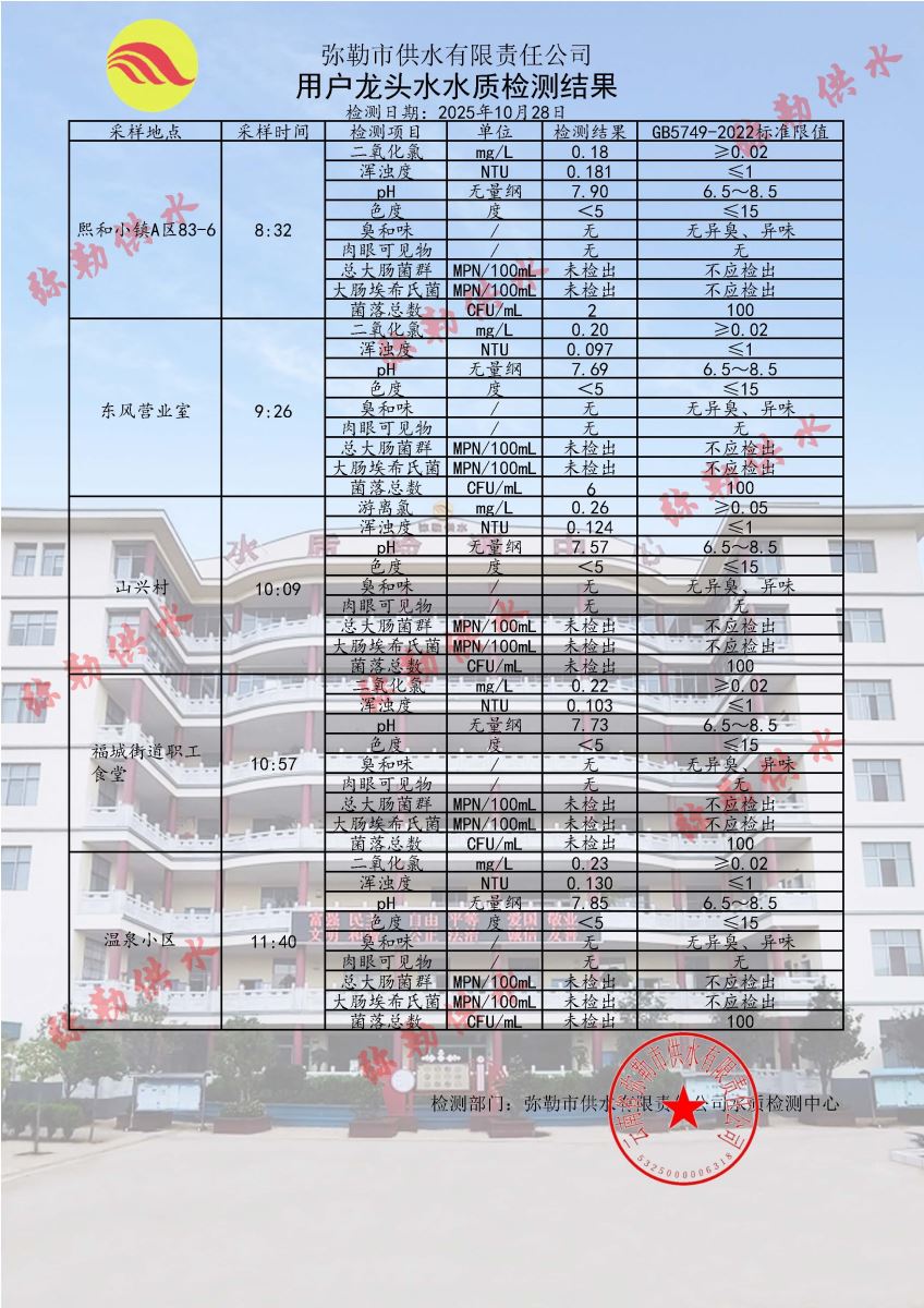 2025年10月28日水质检测日报表