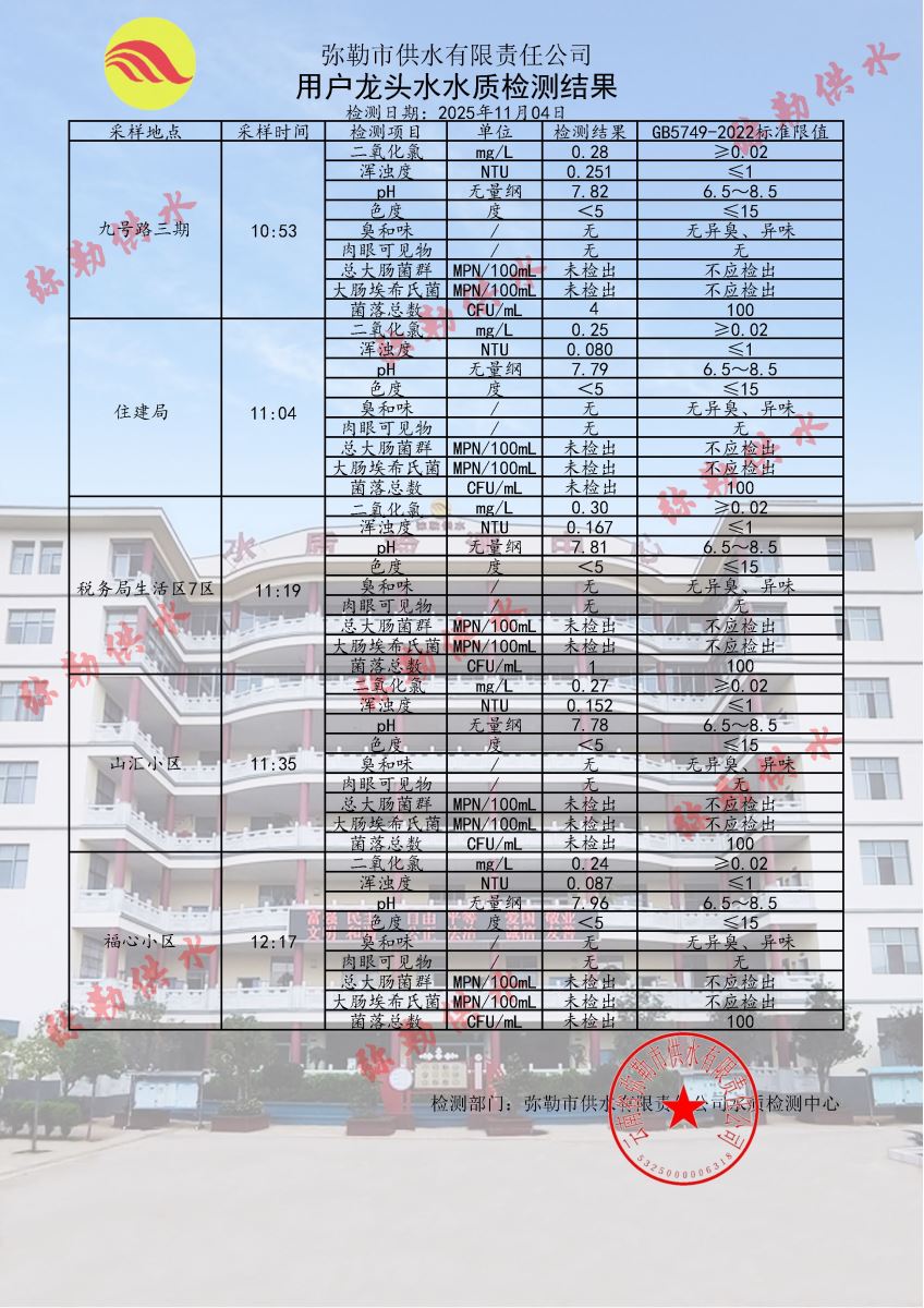 2025年11月04日水质检测日报表