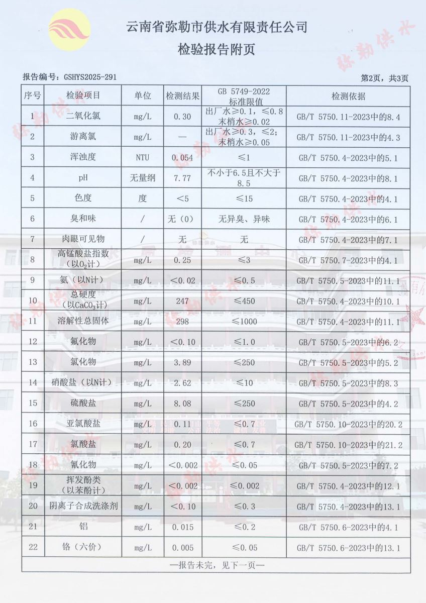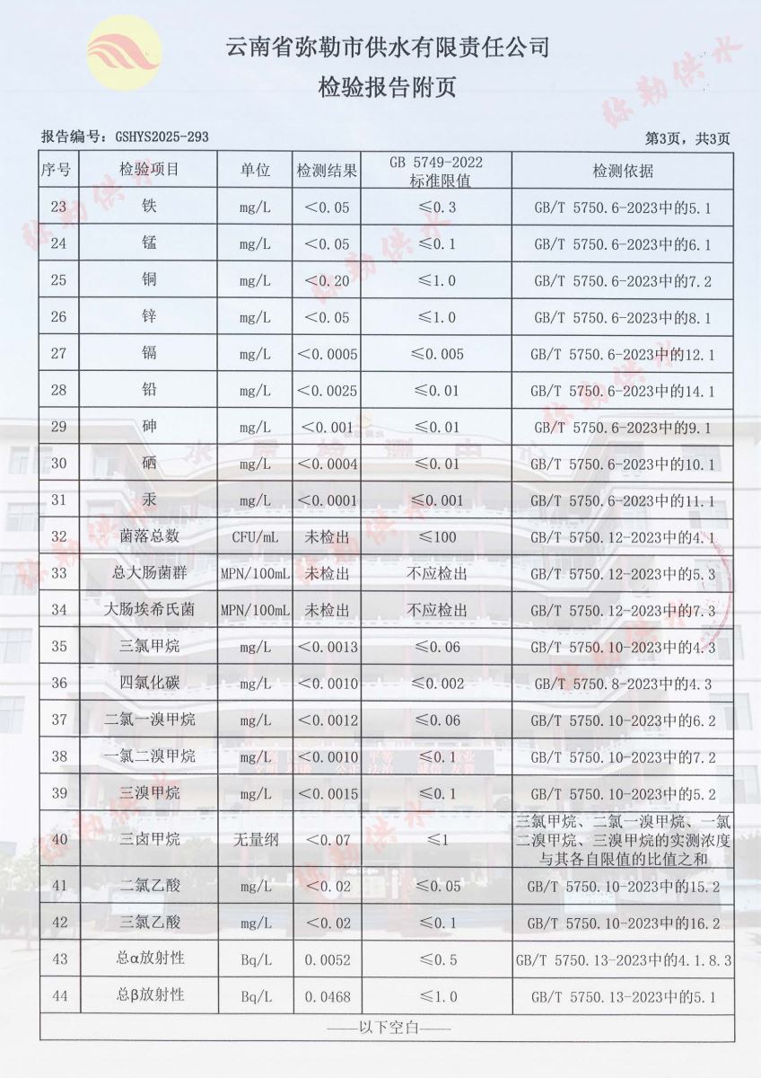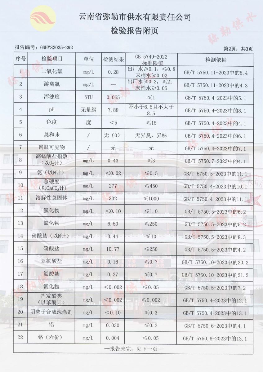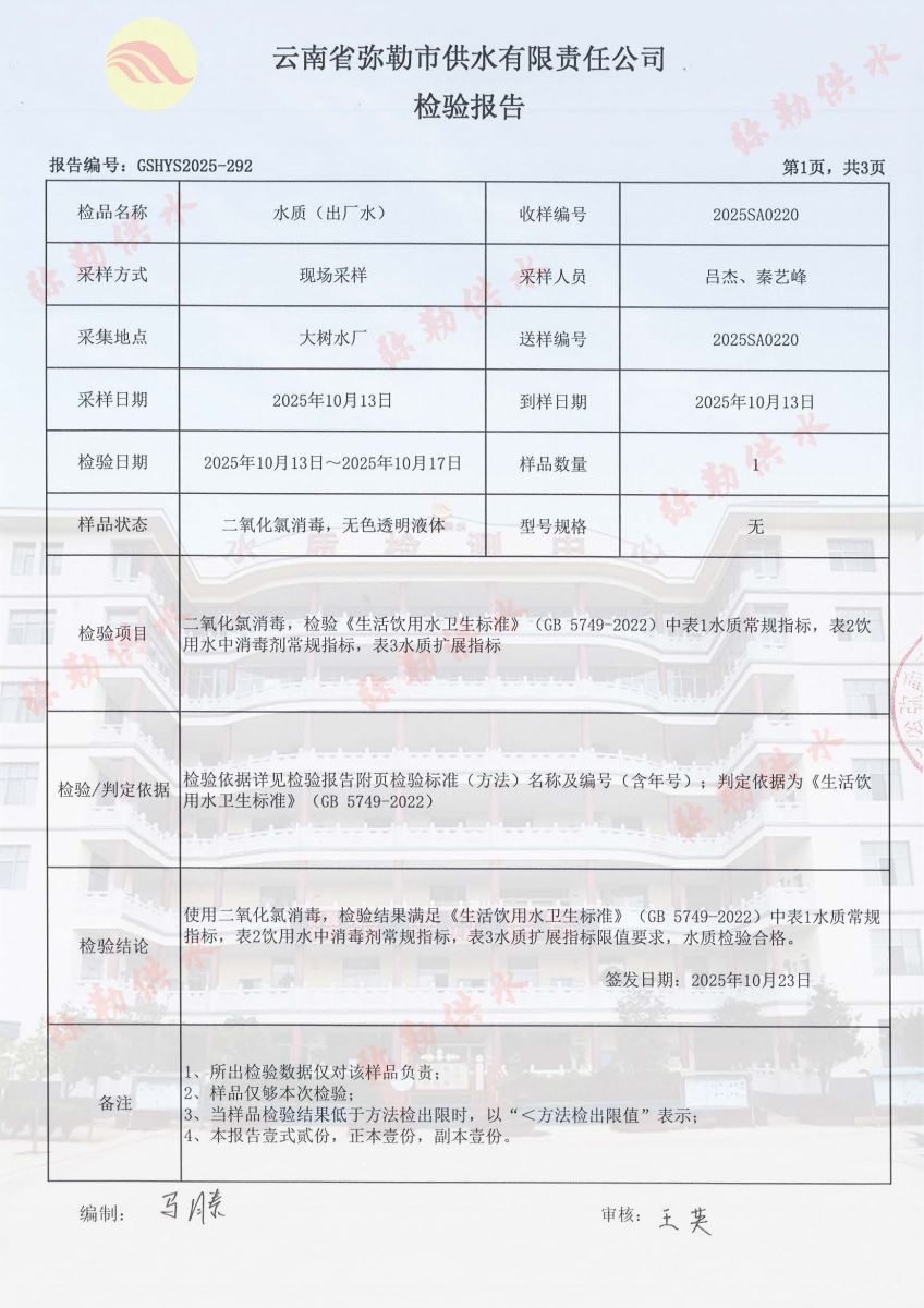 2025年10月水质月检报告