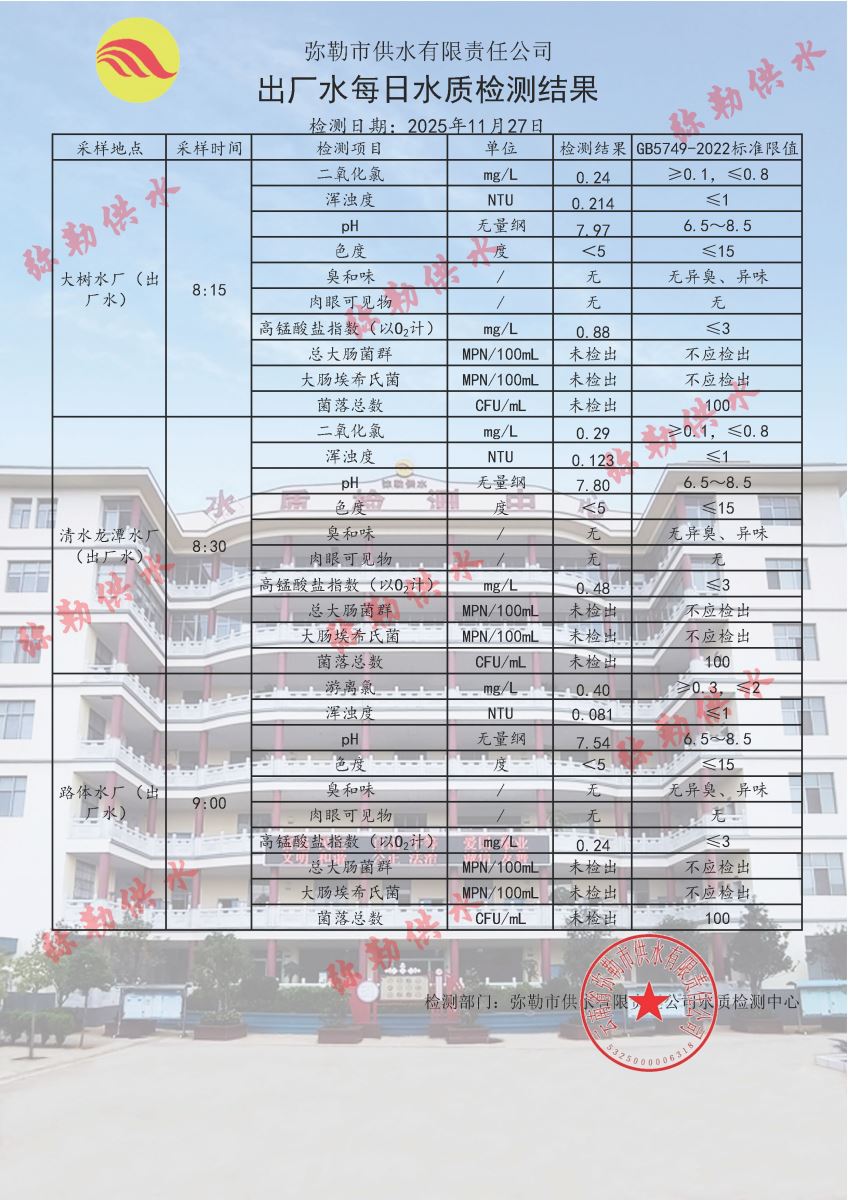 2025年11月27日水质检测日报表