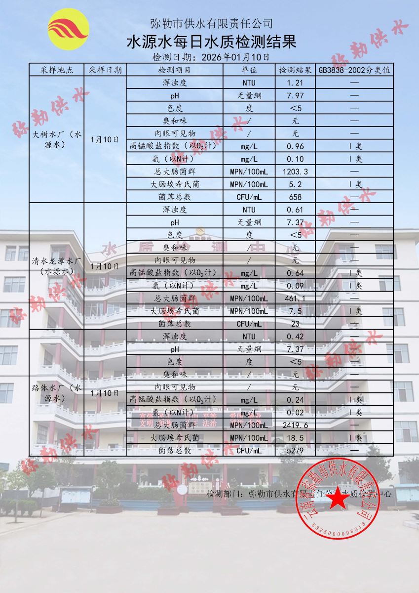 2026年01月10日水质检测日报表