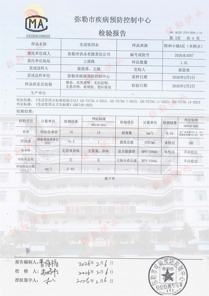 2026年第一季度市疾控中心检验报告