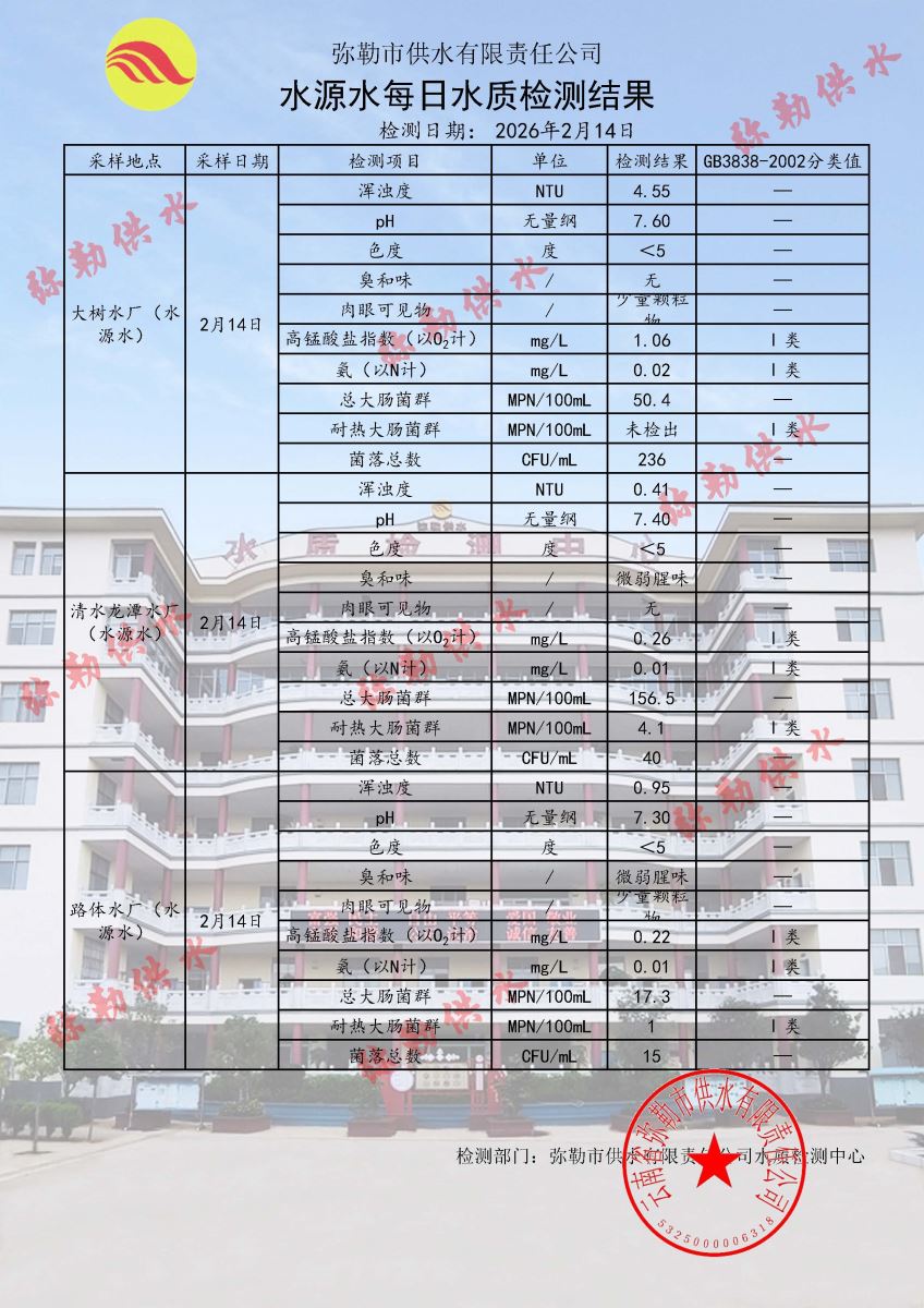 2026年02月14日水质检测日报表