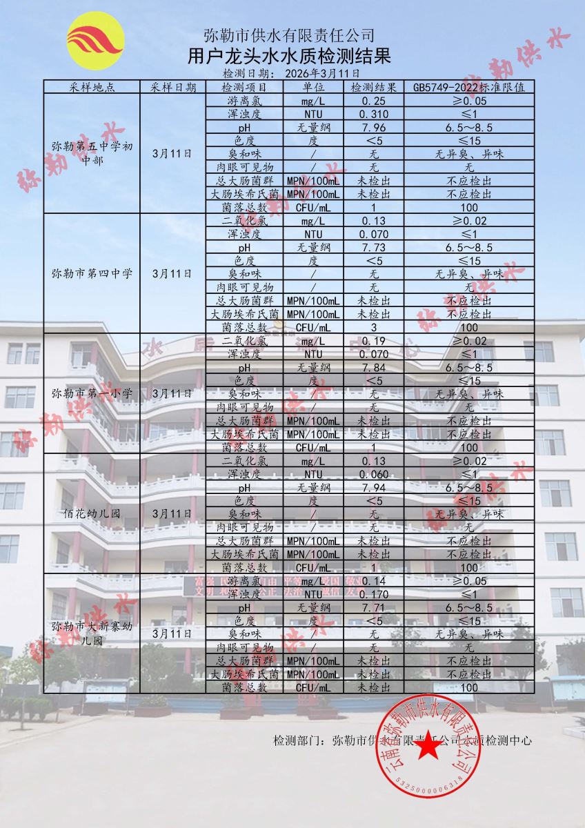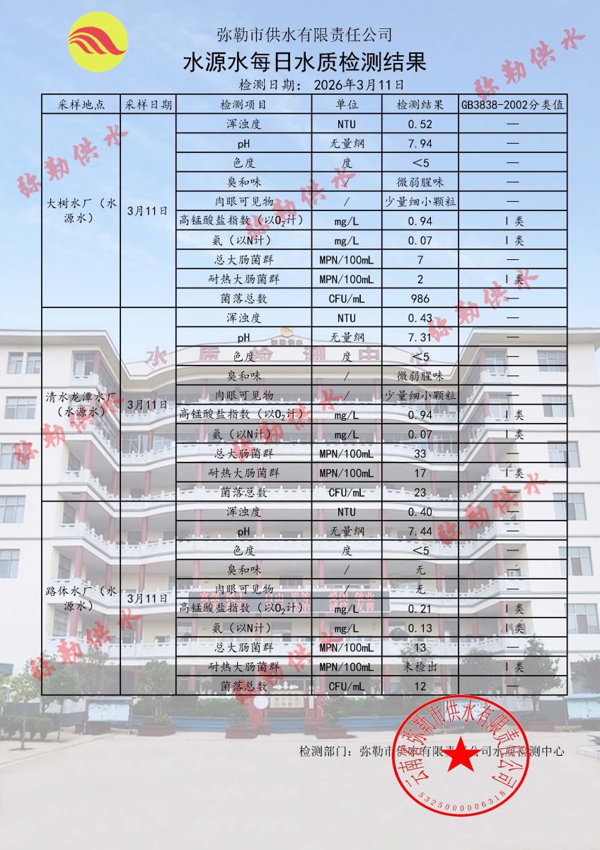 2026年03月11日水质检测日报表