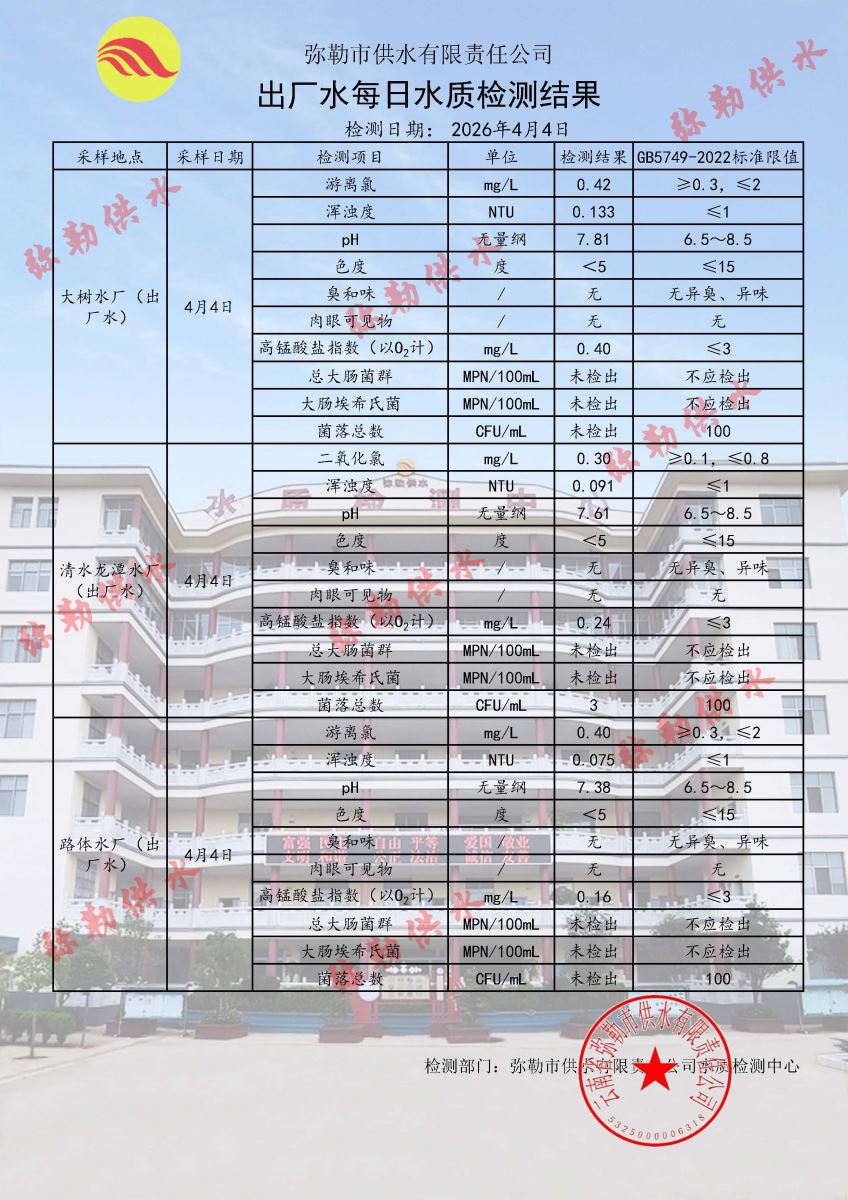 2026年04月04日水质检测日报表