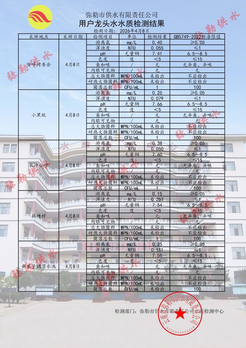 2026年04月08日水质检测日报表
